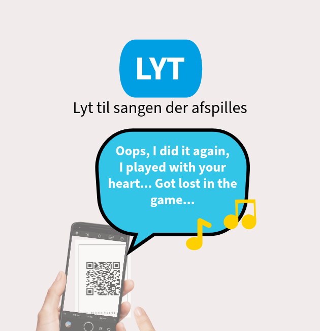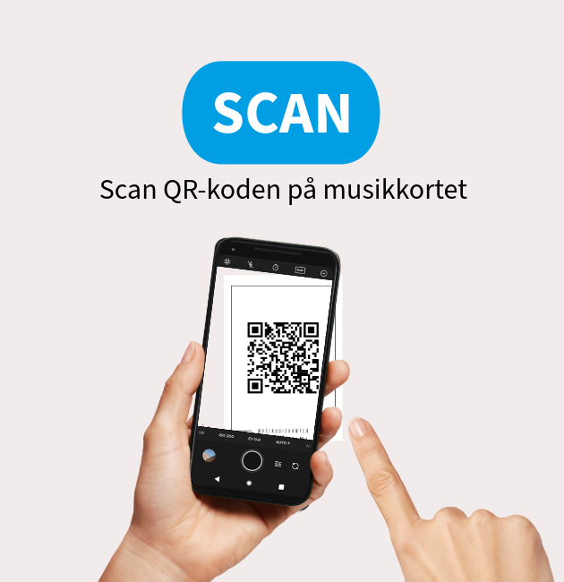 Alle musikkort har en QR-kode på den ene side. Scan koden med mobilen og sangen starter med at spille.
